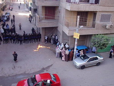 وفي هذه الأثناء قامت قوات الأمن المركزي بإلقاء القنابل المسيلة للدموع على الناخبات والناخبين في المعهد الفني التجاري أحد مقار الانتخاب للرجال والمجاور لمدرسة الناصرية الابتدائية. لقد كانت المعركة الانتخابية على أشدها ولكن من جانب واحد فقد كانت قوات الأمن المركزي بجانب زبانية اللواء خالد زردق من جانب، وضد الدكتور محمد مرسي وبدون أية صلاحيات في جانب الأخير.