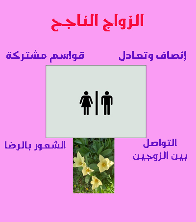 4- الرضا: الشعور بالرضا في الحياة الزوجية على أرض الواقع بعيداً عن أحلام لا يقوى أحد الزوجين أو كلاهما تحقيقها يلعب دوره في نجاح الحياة الزوجية. لا توجد حياة زوجية مثالية ولكن حياة زوجية واقعية بعيدة عن الاستغلال والتسلط وأحلام لا يمكن تحقيقها.