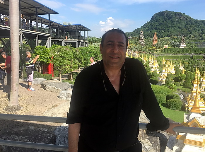 انطلقنا ولم يفِ محمد المرشد السياحي بوعده أن يوقف الحافلة لآخذ صورة مع الأسلاك المعقدة ... لكنني لاحظت أنها موجودة تقريبا في كل الشوارع والتقاطعات بما فيها تلك القريبة من الفندق .... وكانت الجولة كافية لبيان المساحة الهائلة لتلك المدينة الساحلية وكم الفنادق الضخمة والبنايات الشاهقة التي تعتبر بمثابة مدينة بطايا Pataya الجديدة ... ثورة عمرانية واضحة وإشارة إلى براعة جذب الاستثمار والثقة في المستقبل رغم أنها كانت في مصب تسونامي الرهيب... مشينا أكثر من ساعة داخل المدينة لنصل أخيرا إلى القرية الصناعية "نَـمّْ نووم" والتي تشمل فضلا عن أشكال الأشجار والزهور والنباتات وشتى تماثيل الحيوانات ما لا يعد لا يحصى وفضلا عن ذلك مسرحا كبيرا وقاعة ضخمة لاستعراض الأفيال .... وكانت منذ المناظر الأولى جديرة بالإعجاب ... فقد تميزت بالإتقان والإحسان والاهتمام المذهل بالتفاصيل حتى بدت صورنا فيها وكأنها صور في غابة حقيقية .... ويظهر معي في الصورتين أدناه كل من د. عبد الناصر مراد ود. نبيل العجوز من جامعة بنها وفي الأخرى د. لطفي الشربيني ود. إيهاب ملوخية من الإسكندرية.